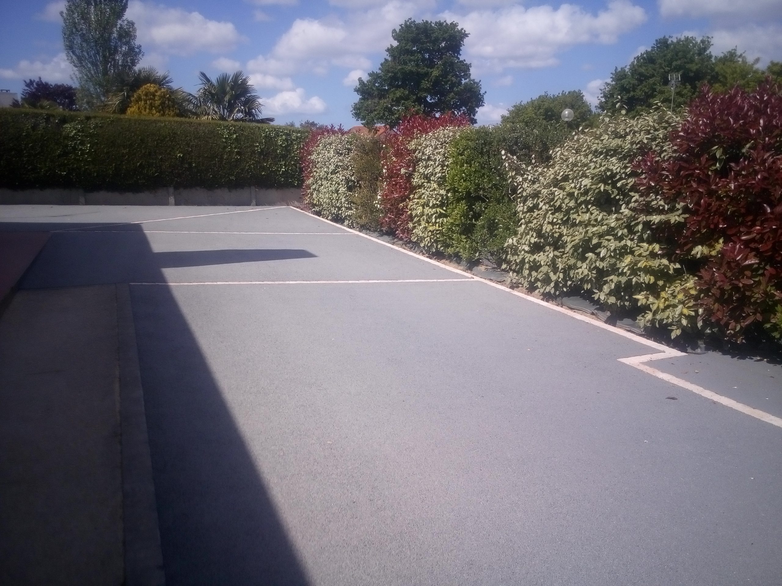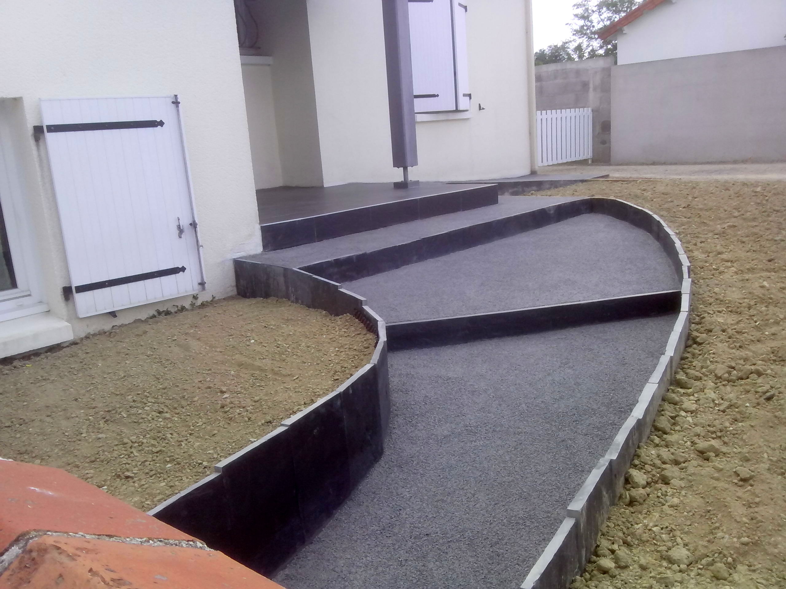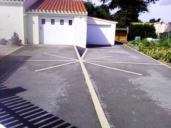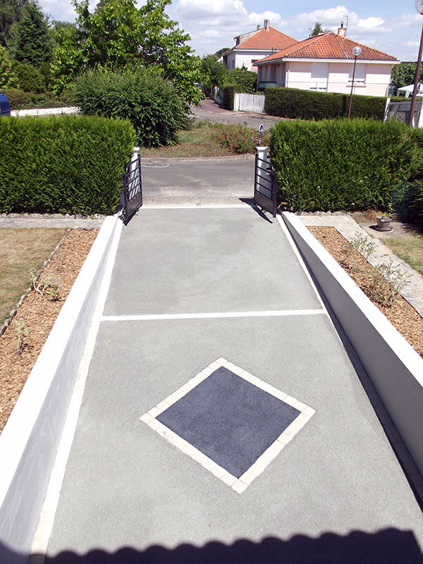 - Allées d'accès en matériaux stabilisés, graviers, béton désactivé, béton poreux, béton coloré.
